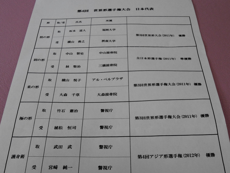 つい!ついに!きたぁ~ 2012-05-10 15:17:43 ブログ 通知がきました。 第4回世界形選手権大会 出場決定! 派遣通知を読むと、 日本柔道が、常に世界一であることをその使命としていることをよくご理解いただき、本大会においても必ずや、所期の目的を達成されますことを期待しております。 と記載してありました。 すでにプレッシャーに押しつぶされそうです。 今の実力では優勝は厳しいでしょう! 残された期間で頑張ります(興奮中) 患者さま またいろいろご迷惑をおかけします。 ご理解のご恩は世界一でお許し下さい。 今後も三橋接骨院をよろしくお願いします。